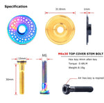FnLune 1 Set RISK 1 1/8" / 28.6mm Mountain Road Bike Bicycle Ahead Headset Top Stem Cap and M6x30 Star Nut Stem Bolt Screw CT4 Titanium