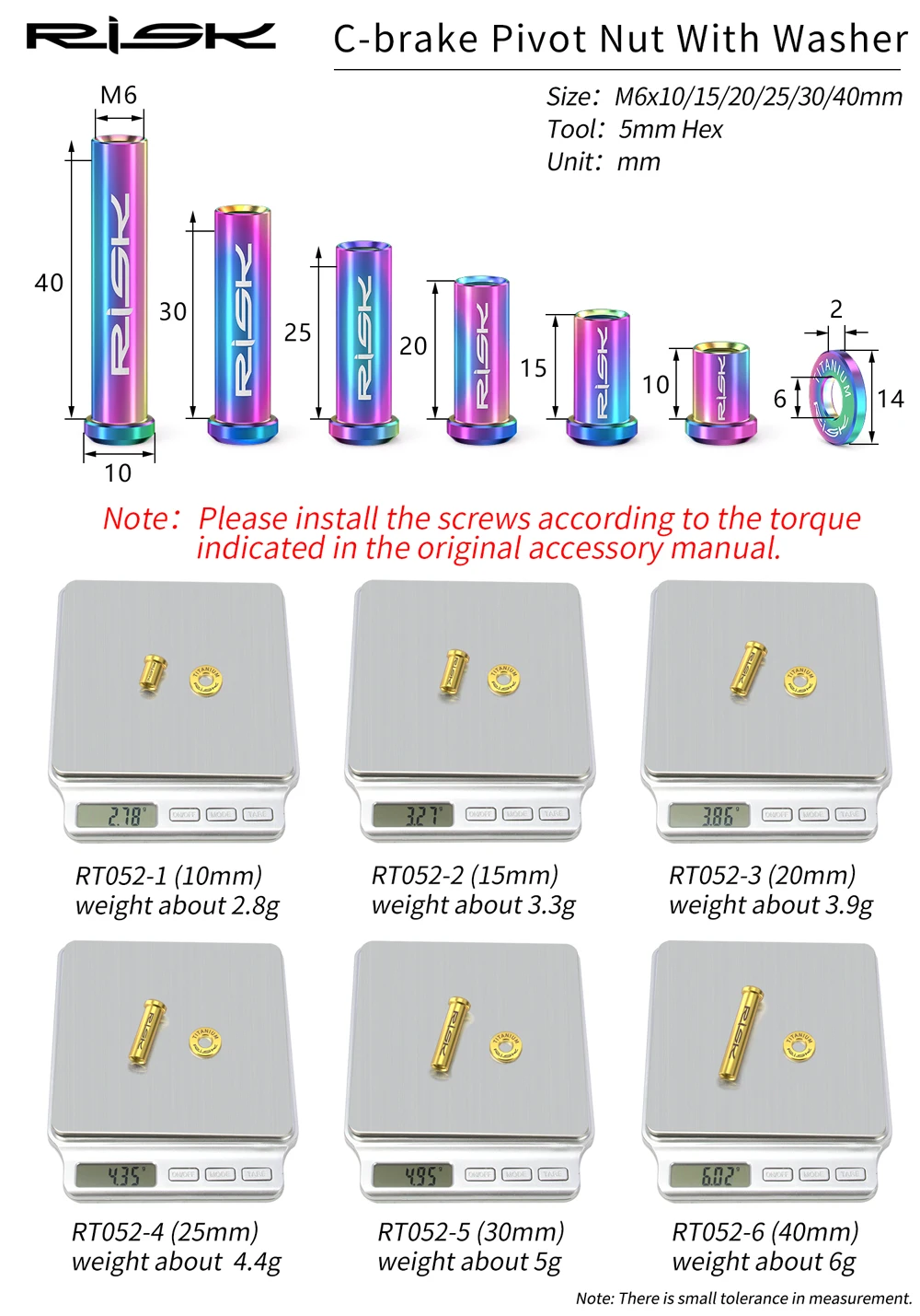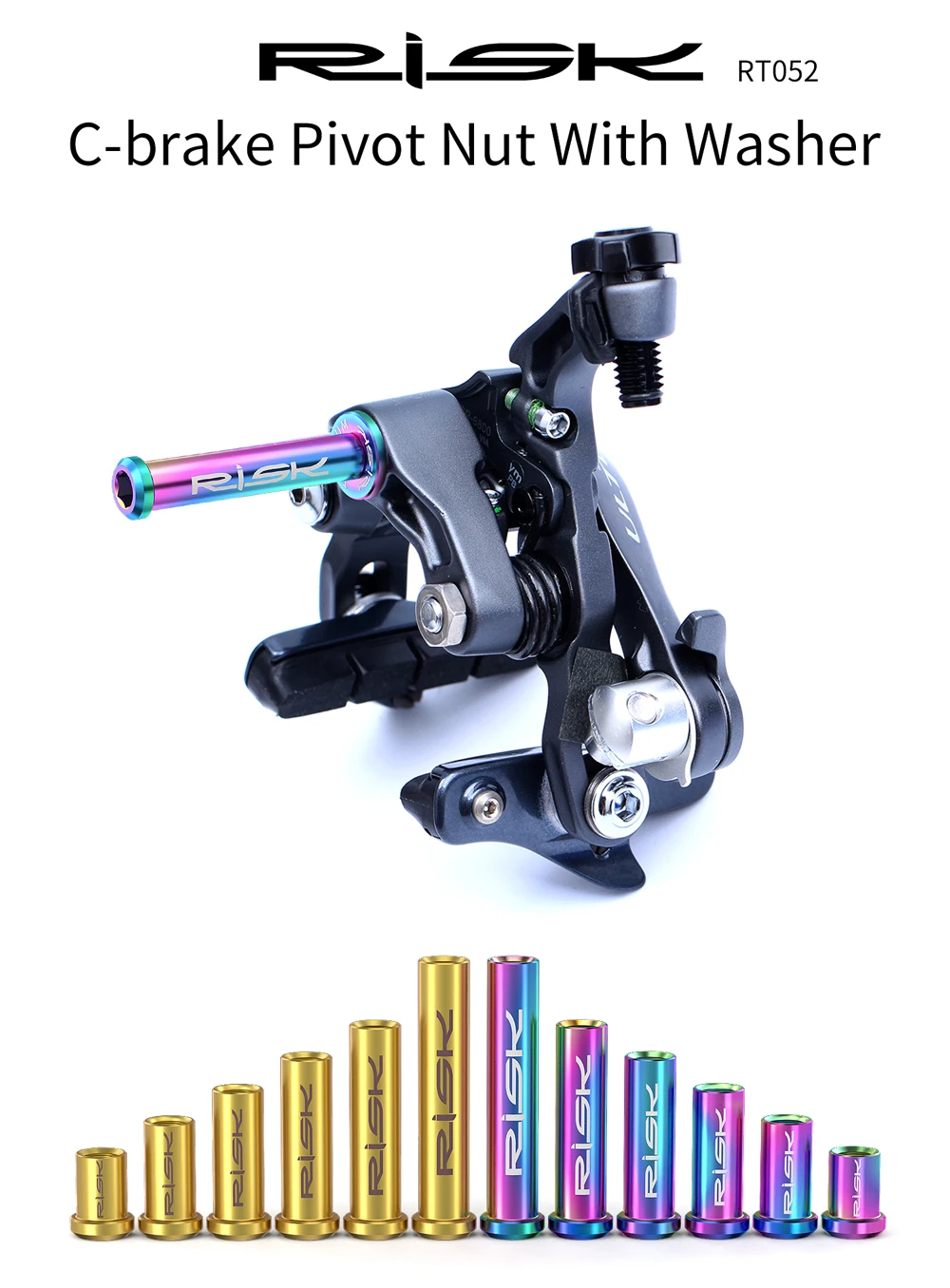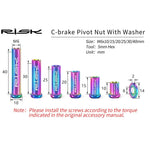 FnLune RISK Road Bike C Brake Pivot Center Nut with Washer c Front Rear Brake Caliper Screw Bolt Titanium Alloy M6x10/15/20/25/30/40mm