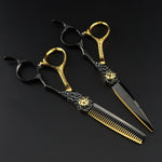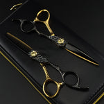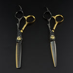 FnLune 440C 6 Inch Black Gold Patterned Hairdressing Scissors