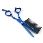 FnLune 440C 6 Inch Blue With Comb Hairdressing Scissors